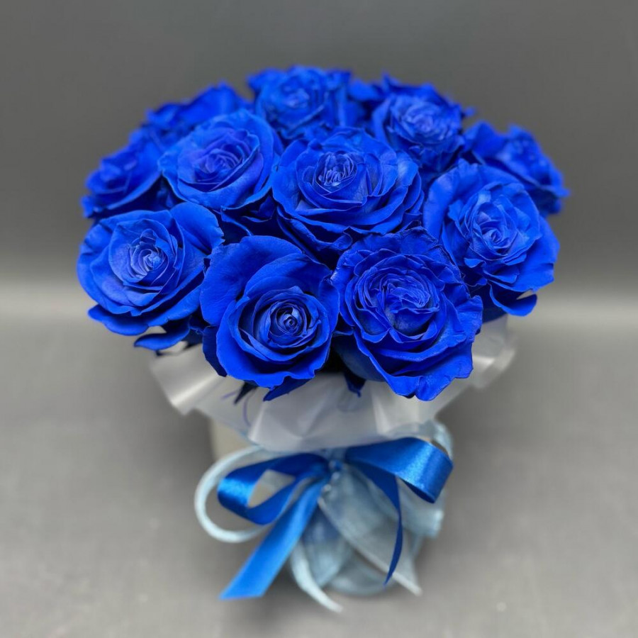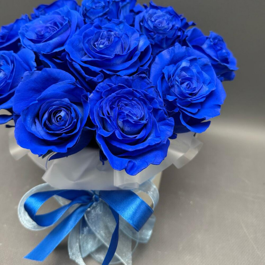 Монобукет из 15 синих роз в коробке «Ночь и море»