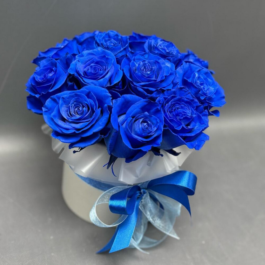 13 синих роз в шляпной коробке в Амурске