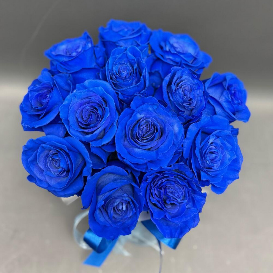 13 синих роз в шляпной коробке