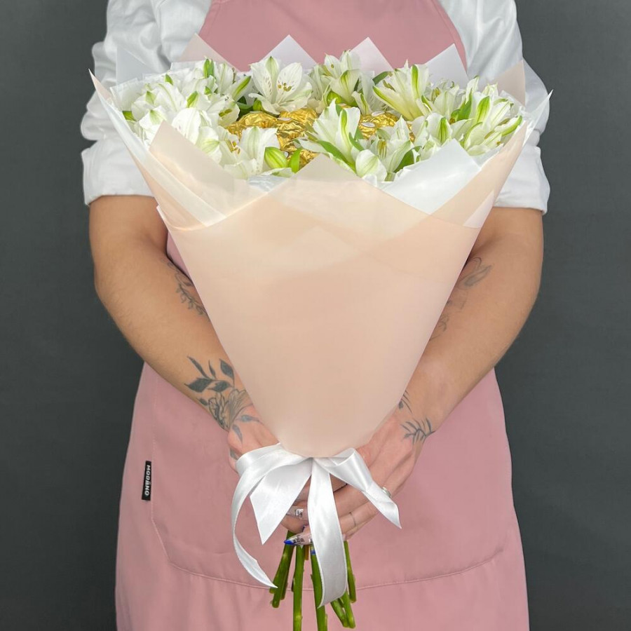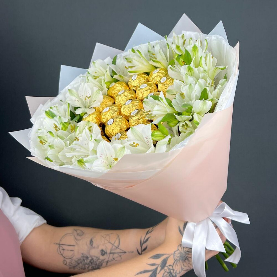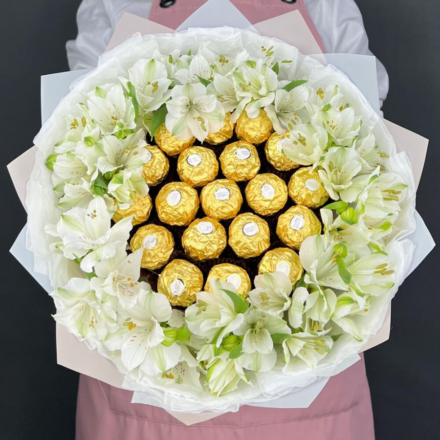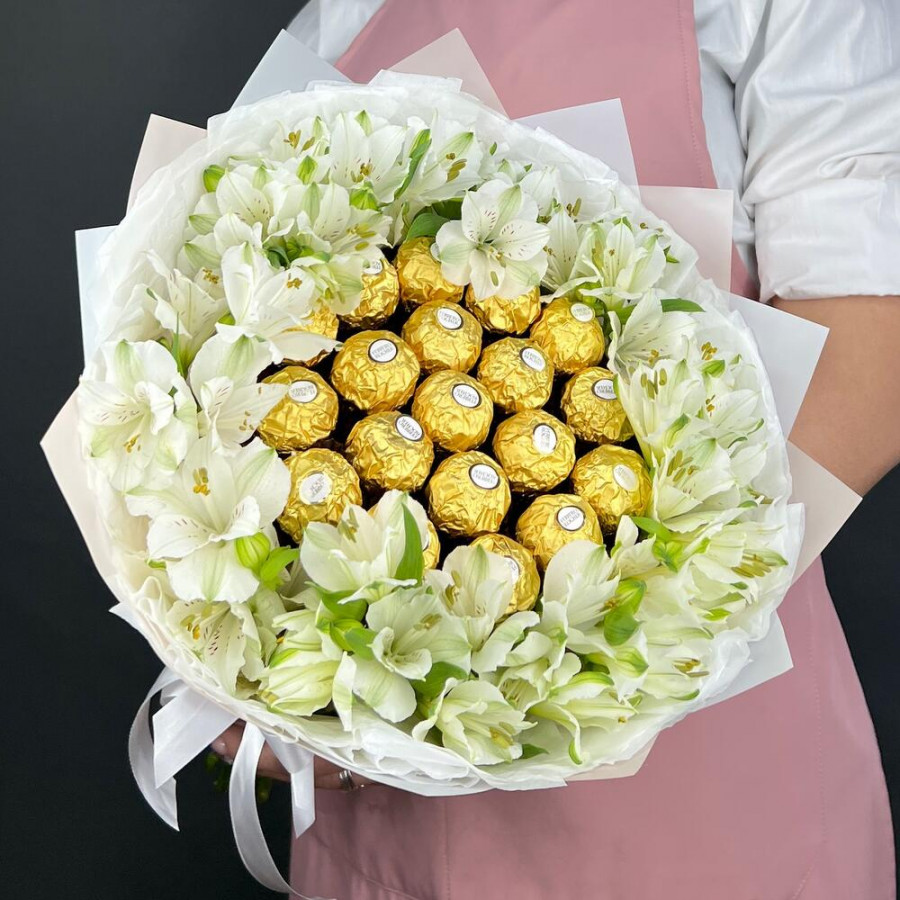 Букет из конфет Ferrero Rocher и и альстромерии в Амурске