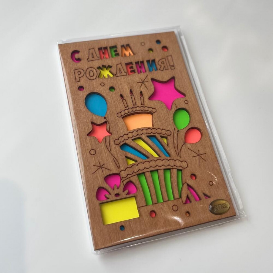 На фото открытка деревянная «с днем рождения». В составе: . Все цветы свежие и ароматные, букет красиво оформлен и отлично подходит для подарка. Доступна доставка цветов или самовывоз.