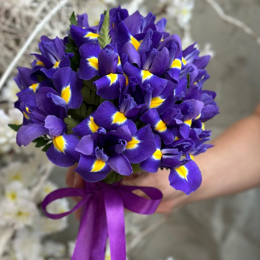 Свадебный букет из синих ирисов